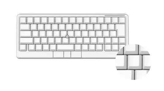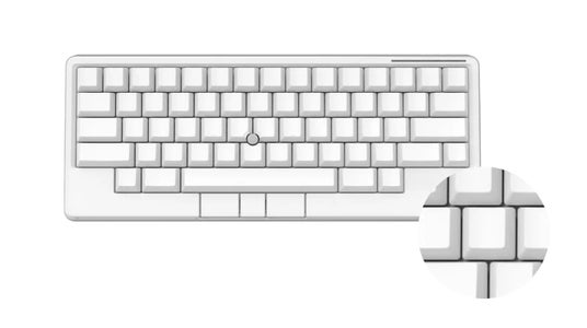 標準搭載の印字色(クールグレー)のキートップセット(雪)に加え、リアルプロフェッショナルの証である無刻印のキートップセット(雪)をご用意します。
