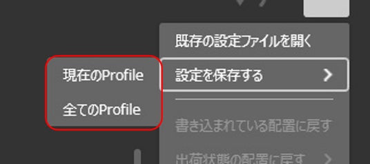 「全て(4つ)のProfile」一括でのプロファイル設定データのインポート/エクスポート機能に加え、新たに個々のプロファイルごとにインポート/エクスポートを行うことが出来るようになりました。