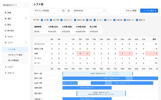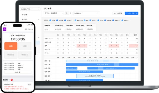 株式会社ダイニー(本社:東京都港区/ 代表取締役:山田真央/以下、ダイ二ー)は、飲食店のシフト・勤怠・給与・従業員満足度(ES)・従業員のスキルなどを一元管理し、飲食店のバックオフィス業務にかかる時間を削減することができる「ダイニー勤怠」の提供を、2024年10月3日に開始したことをお知らせします。