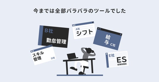 多くの飲食店では現状、シフト・勤怠・給与などを、スプレッドシートやLINE、その他専門のサービスなど複数のプロダクトを組み合わせて管理しているため、複雑でわかりにくいという課題がある他、店長が変わるたびにシフトの管理方法が大きく変わり人件費に波があるという課題があります。