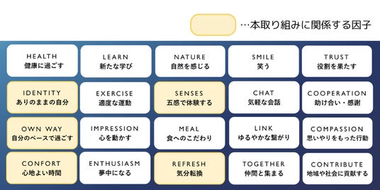 東京建物は、ウェルビーイングに関する施策の検討をより深め、まちづくりに実装していくことを目的に、2023年3月にプロジェクトチーム「Well-being Lab.」を発足しました。Well-being Lab.では、首都圏のビジネスパーソン1万人への調査結果を踏まえ、どのような行動や状況がウェルビーイングの向上に資するのかを分析した20個の「ウェルビーイング向上因子」を特定しています。