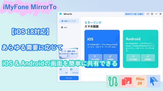 世界中で200+の権威メディアが推奨されたソフトウェア開発会社iMyFoneは令和6年10月3日(木)より、最高のiOS&Android画面ミラーリングソフト「MirrorTo」の最新バージョンをリリースしました。令和6年10月3日(木)より提供開始した「MirrorTo」新バージョンは、iOS-USB接続の成功率を向上させるし、iOS 18/iPhone 16シリーズも対応してます。互換性は一段と高いです。