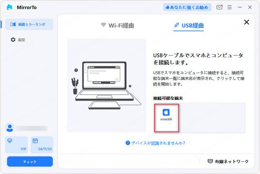 USB経由でのiOS画面ミラーリング接続プロセスを最適化したうえに、成功率を大幅に向上させます。