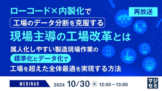 マジセミ株式会社は、大変好評をいただいている「【再放送】ローコード×内製化で工場のデータ分断を克服する現場主導の工場改革とは」というテーマのウェビナーを再放送します。