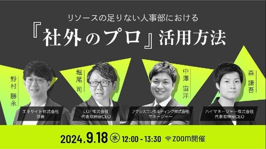 本ウェビナーでは、社外のプロをどのように活用すれば、人事部の業務効率化を図り、組織の成長に貢献できるのかを解説。