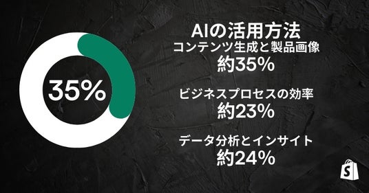 この他、事業者のうち約40%が、日常業務にAIを活用していると回答しています。活用方法と多かったのが、コンテンツ生成と製品画像の強化(約35%)、ビジネスプロセスの効率化(約23%)、データ分析とインサイト(約24%)でした。一方で日本の事業者でAIをコンテンツ生成に使用しているのは44%にとどまり、ヨーロッパや北米では過半数を超える結果となりました。