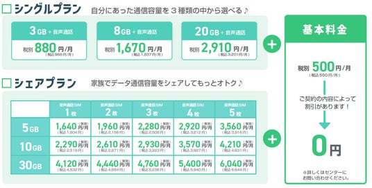 「NCVスマホ」は、一般的にお客さまが利用される月の想定ギガ数と、NCVサービスエリア内における家族同居率などを独自に調査・分析した結果をプランに反映し、ご家族でのご利用を想定した「シェアプラン」を新設いたします。個人で利用される「シングルプラン」と、ご家族でギガ数をシェアできる「シェアプラン」から選んでご利用いただく事が可能となります。