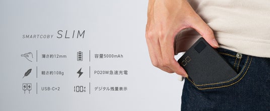 世界最薄級(※1)・35W出力対応のモバイルバッテリー「SMARTCOBY Pro SLIM」