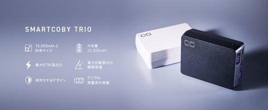 合計3ポート 最大67W入出力 20000mAh 「SMARTCOBY TRIO 67W 20000mAh」