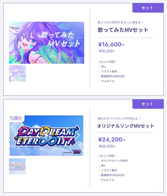 Vグラが提供するMVセット商品の例