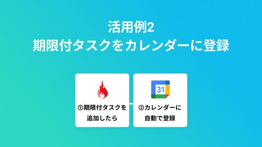カレンダーに自動で期限を登録することで、確実なタスク処理を行うことができます。また手作業を自動化して作業にかかる時間を短縮し、コア業務に集中することで業務効率化につながります。