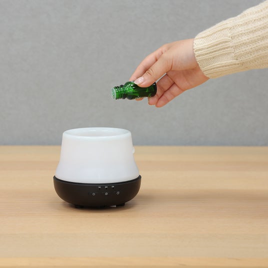 アロマオイルはタンクに直接垂らすだけ水タンクはエッセンシャルオイル対応素材を使用しているため、お好みのエッセンシャルオイルをタンクに数滴垂らすだけで、ミストとともに室内空間にやさしく香りが広がります。