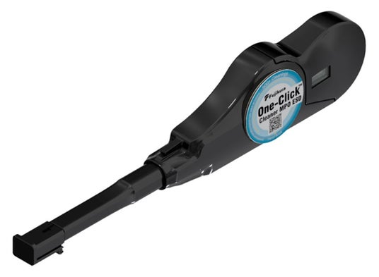 「One-Click(R) Cleaner MPO ESD」は、静電気放電(ESD:Electro-Static Discharge)を防止する機能を備えたMPO光コネクタを清掃するクリーナです。光コネクタ用クリーナとして、IEC 61340-5-1に初めて準拠した製品です。