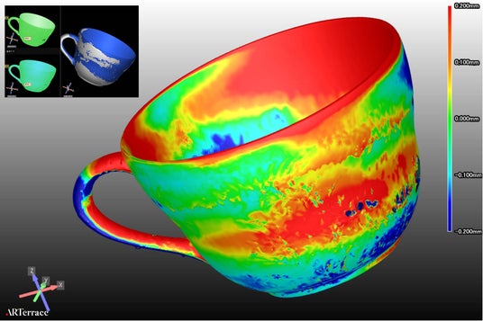 従来、アート作品や工芸品の真贋判定には目視や証明書が頼りでしたが、ARTerraceは3Dスキャナー技術を使用し、作品を高精度でデジタル化することで、この課題に対応しています。3Dスキャナーは、作品の形状や質感、表面の微細なディテールまでを詳細に記録し、偽造や複製が困難な特徴を正確に保存します。特に、手作業で制作された工芸品は、作家特有の技法や技術が込められており、このデジタル化によって、その独自性が完全に保護されます。