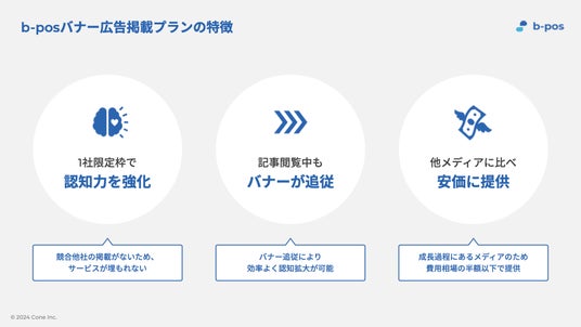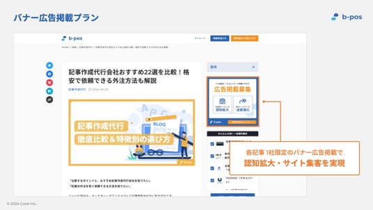 株式会社Cone(本社:大阪府大阪市、代表取締役:佐藤 立樹、以下「当社」)は、BPOサービス比較サイト「b-pos(ビーポス)」より、バナー広告掲載プランの提供を開始したことをお知らせします。