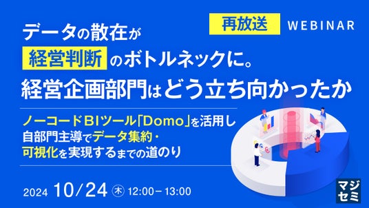 マジセミ株式会社は、大変好評をいただいた「【再放送】データの散在が経営判断のボトルネックに。経営企画部門はどう立ち向かったか」というテーマのウェビナーを再放送します。