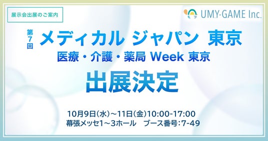 マーケティングDXサービスや歯科予約サイト「Teech」を提供しているウミガメ株式会社(所在地:東京都渋谷区、代表者:松下勇介、以下:当社)は2024年10月9日(水)~11日(金)の3日間にかけて、幕張メッセにて開催される「メディカルジャパン東京展」に出展いたします。
