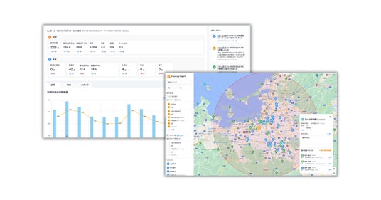 訪問診療スケジュール管理サービス「CrossLog」のデータを連携し、各種数値を自動でレポート化します。地図情報を活用した営業管理もでき、在宅クリニック運営のための分析や対策の工数を削減することができます。