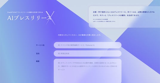 生成AIでプレスリリースの雛形を秒速で作れる、生成AIツール「AIプレスリリースX」を公開
