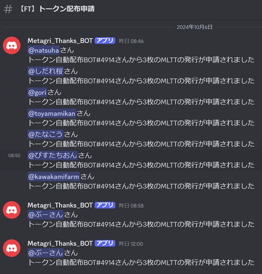 - Discordで特定のメンバーをメンションすると、対象者にソーシャルトークンを発行