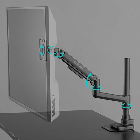 重たい大型モニターを取り付けていても軽々スムーズに昇降可能なガス圧式アームを採用。力をかけなくても難なく大型ディスプレイを動かせます。また、各関節部の可動域は広く設計しており、作業内容やプレイスタイルに合わせた、最適なモニターポジションを追求可能です。