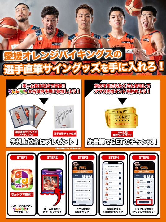 スポーツ予想アプリ「なんドラ」で愛媛オレンジバイキングス ホームゲームの活躍選手&試合展開予想を2024-25シーズンも開催!