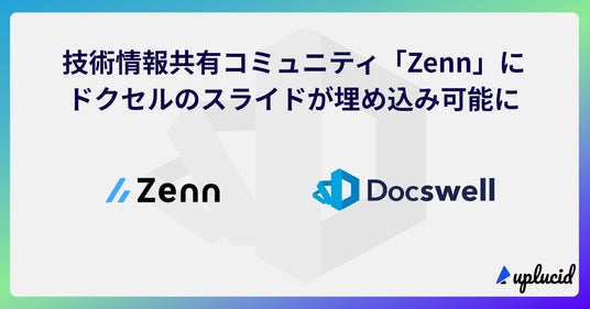 株式会社アプルーシッド(本社:東京都千代田区)は、クラスメソッド株式会社(本社:東京都港区)が運営する技術情報コミュニティ「Zenn」において、当社が提供するスライド共有サービス「ドクセル(Docswell)」のスライドを埋め込み表示できるようになったことをお知らせいたします。