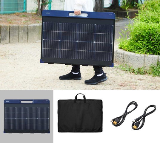 ソーラーパネルの面に太陽光が当たるように設置し、充電するポータブル電源とケーブルで接続するだけですぐに使用できます。最大100Wの出力が可能で、アウトドアシーンはもちろん、防災用品としても活用できます。