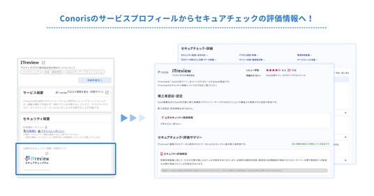 ITサービスマネジメント領域のプロダクト開発を行う、株式会社Conoris Technologies(所在地:東京都港区、代表取締役:井上 幸)は、ITreviewをはじめ、クラウドサービス関連のサービスを複数展開するアイティクラウド株式会社(所在地:東京都港区、代表取締役社長 兼 CEO:黒野 源太)が提供するクラウドサービスの第三者評価サービス「ITreview SaaSセキュアチェック Pro」と弊社が提供するWebサービスセキュリティチェック支援サービス「Conoris」が正式に連携を開始したことをお知らせいたします。