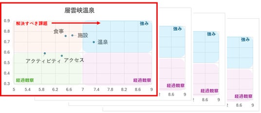 この調査は、マーケティングアプリケーションズが保有する消費者パネル「MApps Panel」を活用し、過去1年以内に同温泉を訪れた道内の観光客を対象に、NPS(R)を活用して実施いたしました。多様な角度から満足度を調査し、他の温泉地との比較もおこないました。同町では、「アクセス(立地)」が観光客の満足度を高めるために克服すべき最大の課題だと考えていましたが、本調査結果から、実際には「食事」の強化が必要であることが明らかになりました。