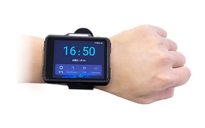 NLS-WD1は、手首に装着してタッチで操作できる業務用ウェアラブル端末です。