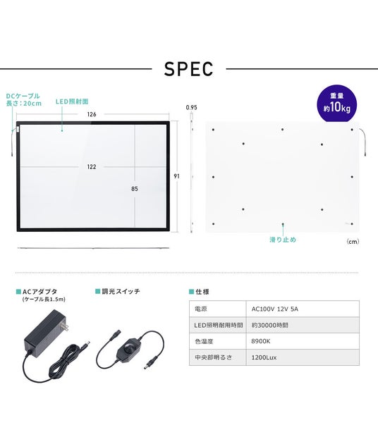 LEDトレース台 A0サイズ 薄型 無段階調光 LEDライト 1200ルクス 調光スイッチ付き AC給電 ライトテーブル 製図 イラスト 建築設計 パターン 工業デザイナー イラストレーター