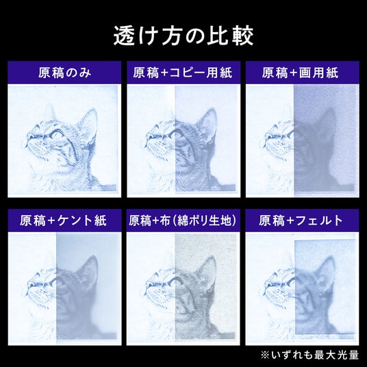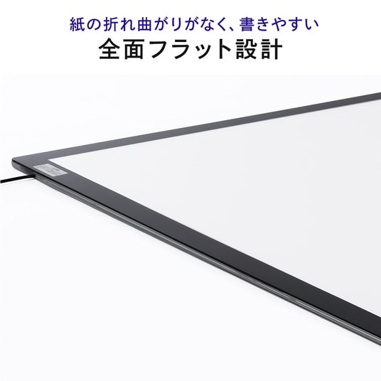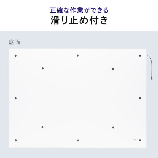 厚さ9.5mmという驚くほど薄いデザインで段差のないフラットな面が、透写作業をよりスムーズにできます。軽量で持ち運びもしやすく、作業スペースを有効に活用できます。また、安全に配慮した角丸処理や裏面に滑り止めがついており正確に作業ができます。