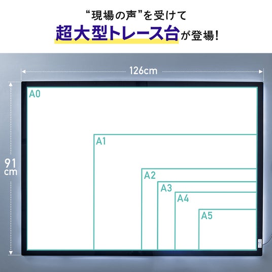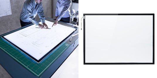 A0サイズの広大な作業面と無段階調光できる240個のLEDライトを搭載した建設現場などの製図や大きいポスターを作成する際に最適なトレース台