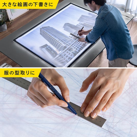 A0サイズのトレース台は、設計図やポスター作成に最適です。A1サイズのトレース台を2つ並べるとつなぎ目が生じますが、本製品なら一枚で広々とした作業面が確保できます。複雑なデザインや精密な作業を行う際にも、ストレスなく効率よく作業できます。