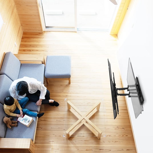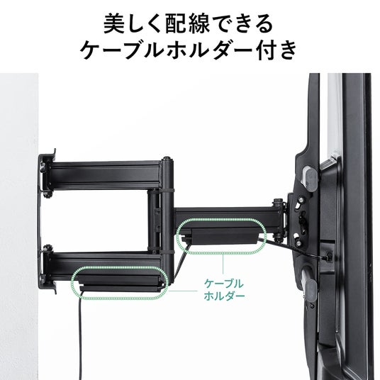アームタイプの壁掛け金具で、左右・上下・前後の見やすい向きにテレビを設置することができます。