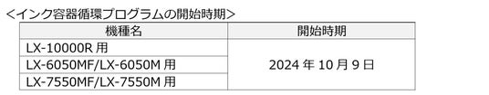 「エプソンのスマートチャージ」として『LX-10000R』を皮切りに、リファービッシュ品(認定整備済み製品)とインク容器循環プログラムを順次、他の機種に展開していきます。