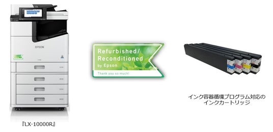 エプソン販売株式会社は、「エプソンのスマートチャージ」に対応する初めてのリファービッシュ品(認定整備済み製品)『LX-10000R』を本日より発売します。併せて、インク容器循環プログラム対応のインクカートリッジを本日より提供開始します。