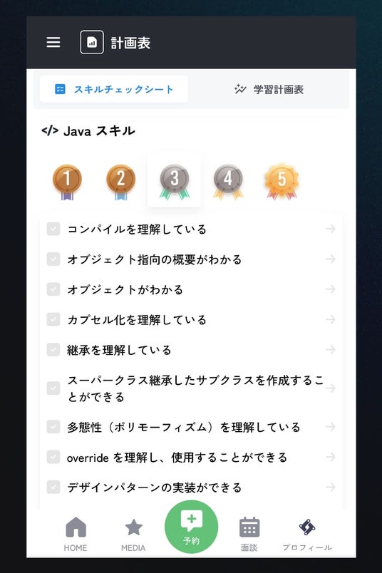 今回新たに導入する「Java スキルチェックシート」は、学習者の Java スキルを客観的に評価することが可能です。