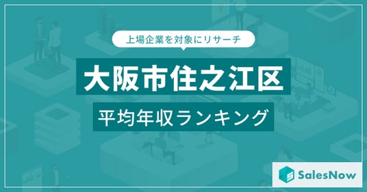 「誰もが活躍できる仕組みをつくる。」をミッションに掲げ、セールスチームの武器となるデータベース「SalesNow」を展開する株式会社SalesNow(本社:東京都渋谷区、代表取締役:村岡功規、以下「SalesNow」)は、国内540万社の企業情報を完全網羅した日本最大級のデータベース「SalesNow DB」より、大阪市住之江区に本社を置く上場企業の年収ランキングを調査しました。
