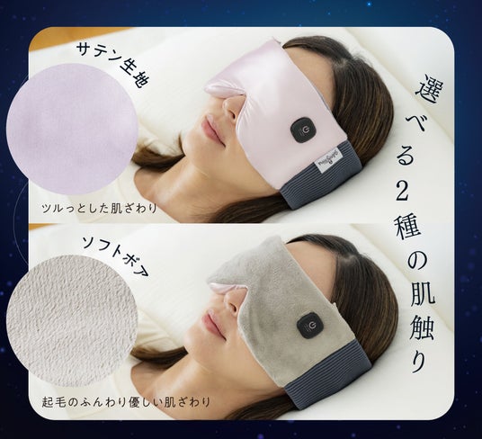 目を温めながら耳も包み込み自分だけの空間に没入できるような使用感と、2Wayリバーシブル生地で一年中心地よく使用できるコスパの良さを特徴としています。