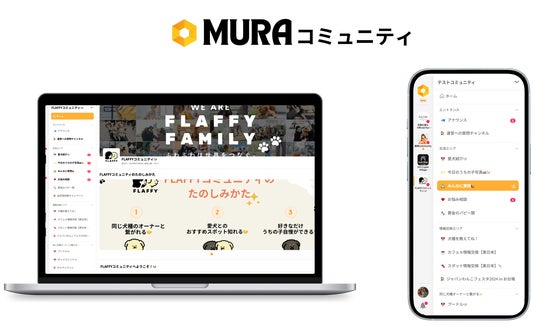 このたび、MURAコミュニティにてFLAFFYの公式ファンコミュニティを開設いたしました。愛犬家同士が気軽に繋がれる場所を提供することで、交流や情報交換を盛んにし、家族と愛犬が”もっと”わかりあえる世界を作っていきます。FLAFFYのコンセプトである“イヌとヒトの関係をフラットに”を体現する"日本最大の愛犬家コミュニティ"を目指してまいります。ぜひたくさんの愛犬家の方々にご参加いただけると嬉しいです。
