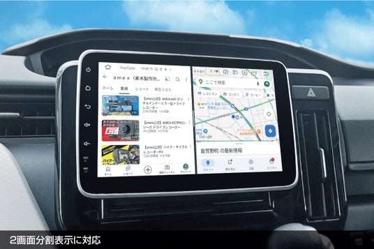 スマホランチャー「AMEX-SL03シリーズ」は、青木製作所が提供する第3弾のディスプレイオーディオです。当シリーズより「Apple CarPlay」「Android Auto」に対応しており、本機とスマートフォンをBluetooth接続いただくと自動で「Apple CarPlay」「Android Auto」に繋がるワイヤレス接続が可能となります。また、YouTubeをはじめNetflixやTVerなど幅広い動画配信サービスを本機で直接視聴することができます。さらに、スマートフォンのデータ通信制限や電波の届きづらい環境下でもマップアプリ機能の1つであるオフラインマップ機能や動画のオフライン再生ができるよう内部ストレージ64GBを搭載したほか、お好みのアプリを同時に使用できるアプリの2画面分割表示など豊富な機能を備えています。
