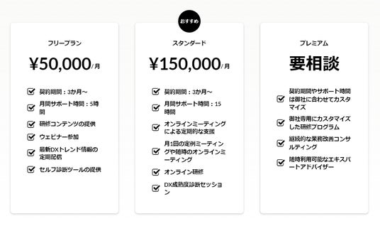 月額5万円からの低価格プランにより、初期費用を抑えつつ内製化をスタート可能。スモールスタートからの導入が容易です。