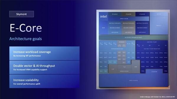 EコアはPコア以上にエリアあたりの電力効率に特化した設計であるのは今まで通りだが、従来(文脈的にLunar Lakeは除外する)のEコアよりもベクトル演算が大幅に強化されている。