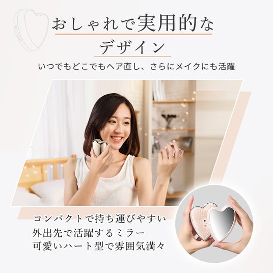 ミラー付きのカバーで、外出先でのヘアアレンジも手軽に。可愛らしいハート型デザインは、自分へのご褒美やプレゼントにも最適です。
