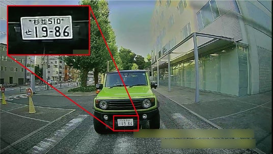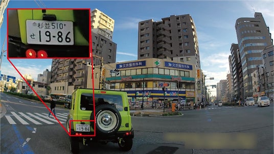 約200万画素の高感度フルHD録画に対応。走行車両のナンバープレートの文字までくっきりと記録します。