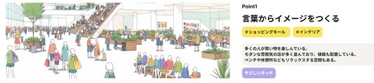 空間イメージのテキスト文、イラストスタイルを設定し、生成した結果