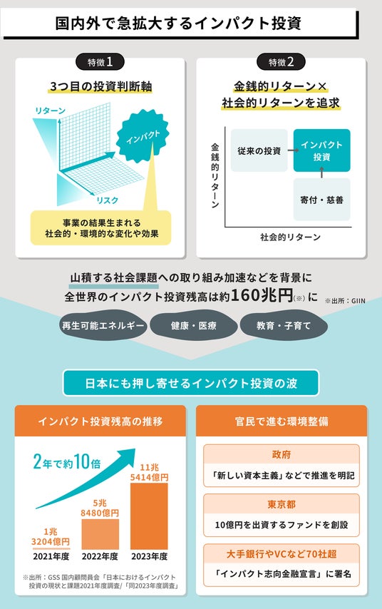 ・社会的インパクトを可視化するニーズは世界的に急拡大。国内のインパクト投資残高は11兆円を超え、官民で推進に向け環境整備が進む