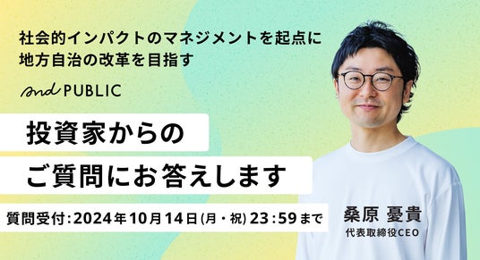 2024年10月14日(月・祝)23:59まで、投資家のみなさまより「アンドパブリック」へのご質問を受け付けます。投資家の皆さまからいただいたご質問への回答を、2024年10月16日(水)目途に募集ページ(https://ecrowd.co.jp/projects/43)へ掲載する予定です。
